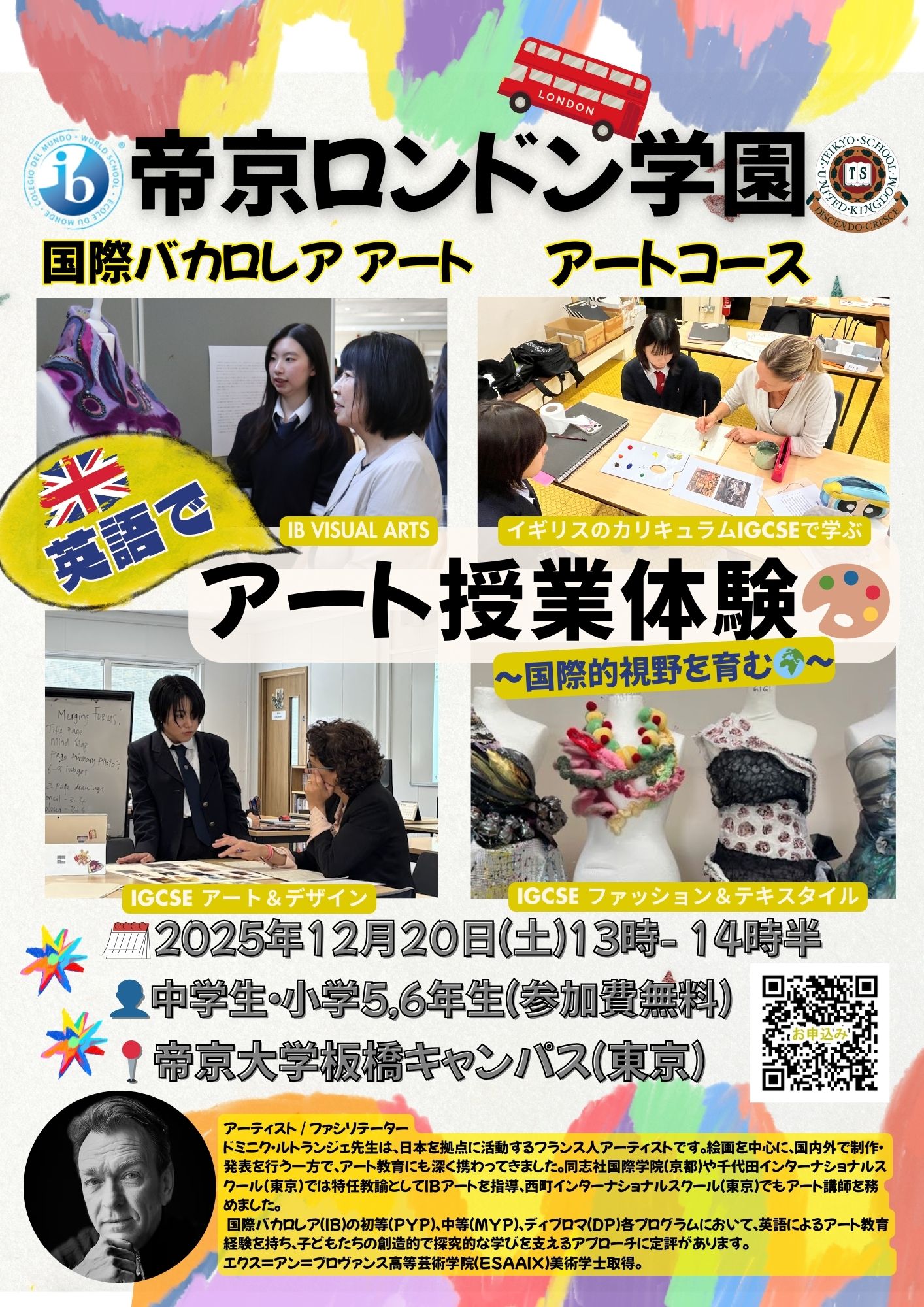 【2025年12月20日】国際バカロレア ビジュアルアート、アートコース『英語でアート授業体験』(主催:帝京ロンドン学園)