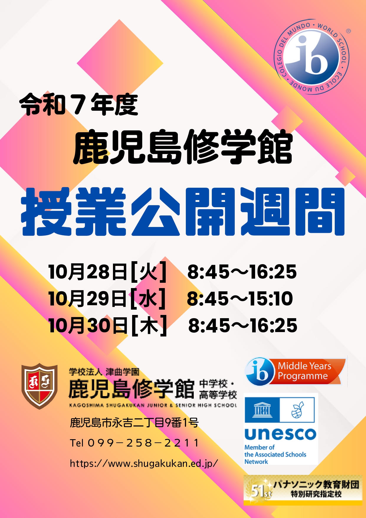 【2025年10月28日~30日】授業公開(主催:学校法人津曲学園鹿児島修学館中学校・高等学校)