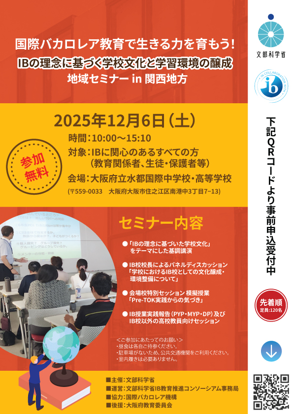 【2025年12月6日(土)10:00‐15:10】2025年度 国際バカロレア教育 地域セミナー in 関西地方(2次案内)(主催:文部科学省)