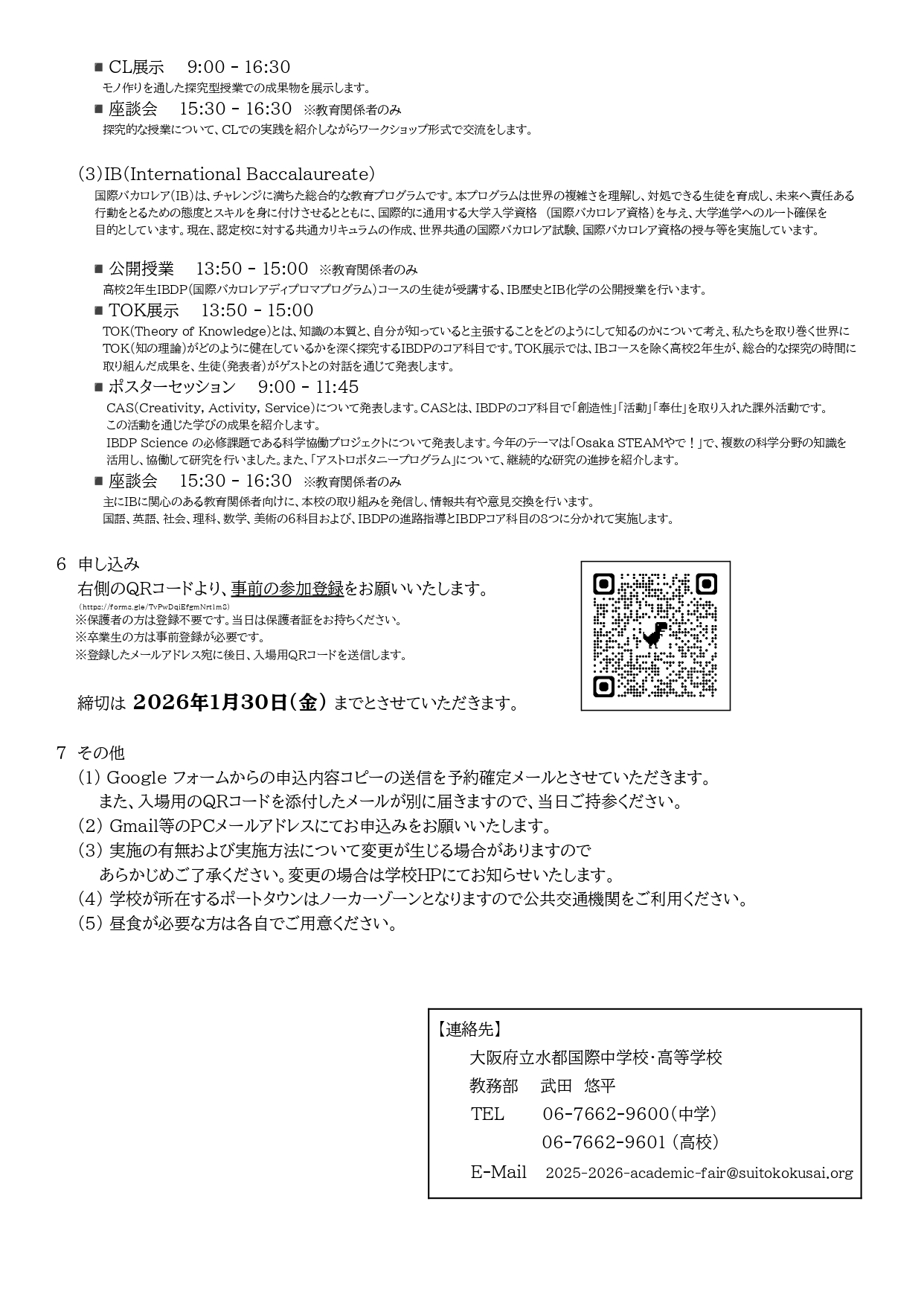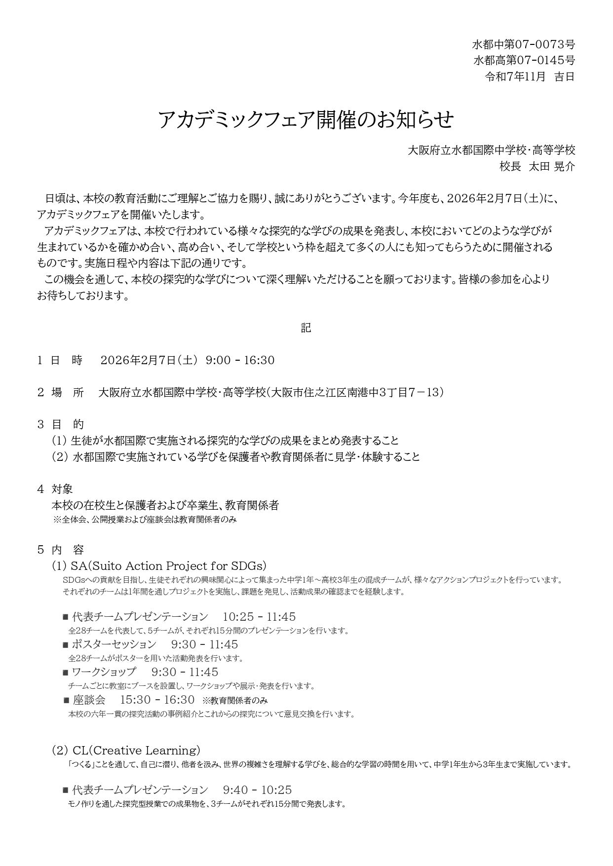 大阪府立水都国際中学校・高等学校(Osaka Prefectural Suito Kokusai Junior & Senior High School)より、以下のイベントについて案内がありましたのでお知らせします。