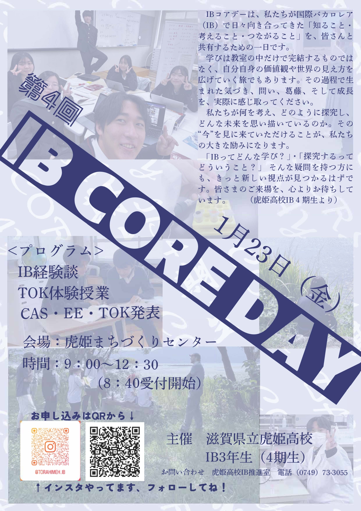 本校では、下記のとおり、国際バカロレア(IB)の学習成果発表会「IBコア・デー」