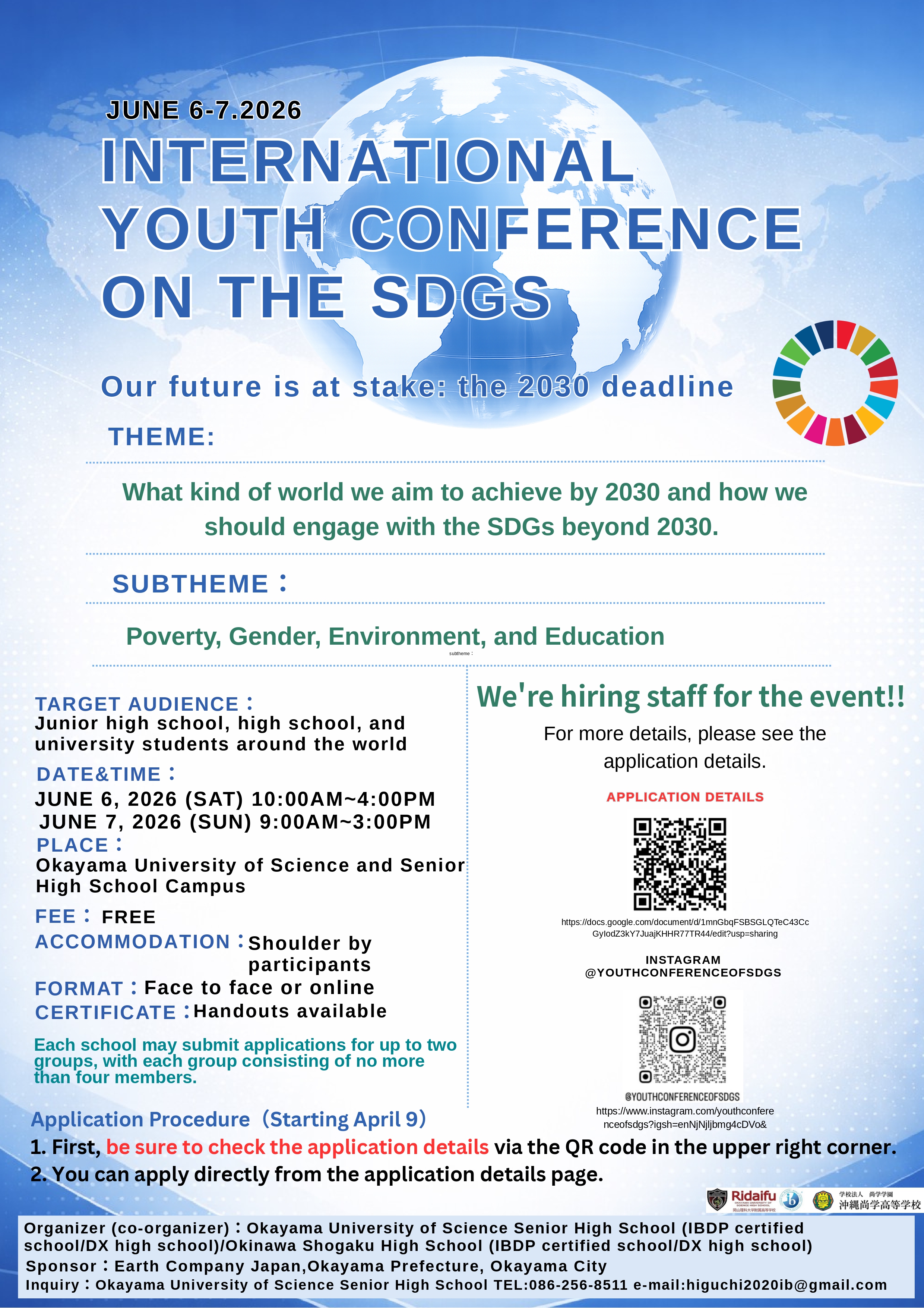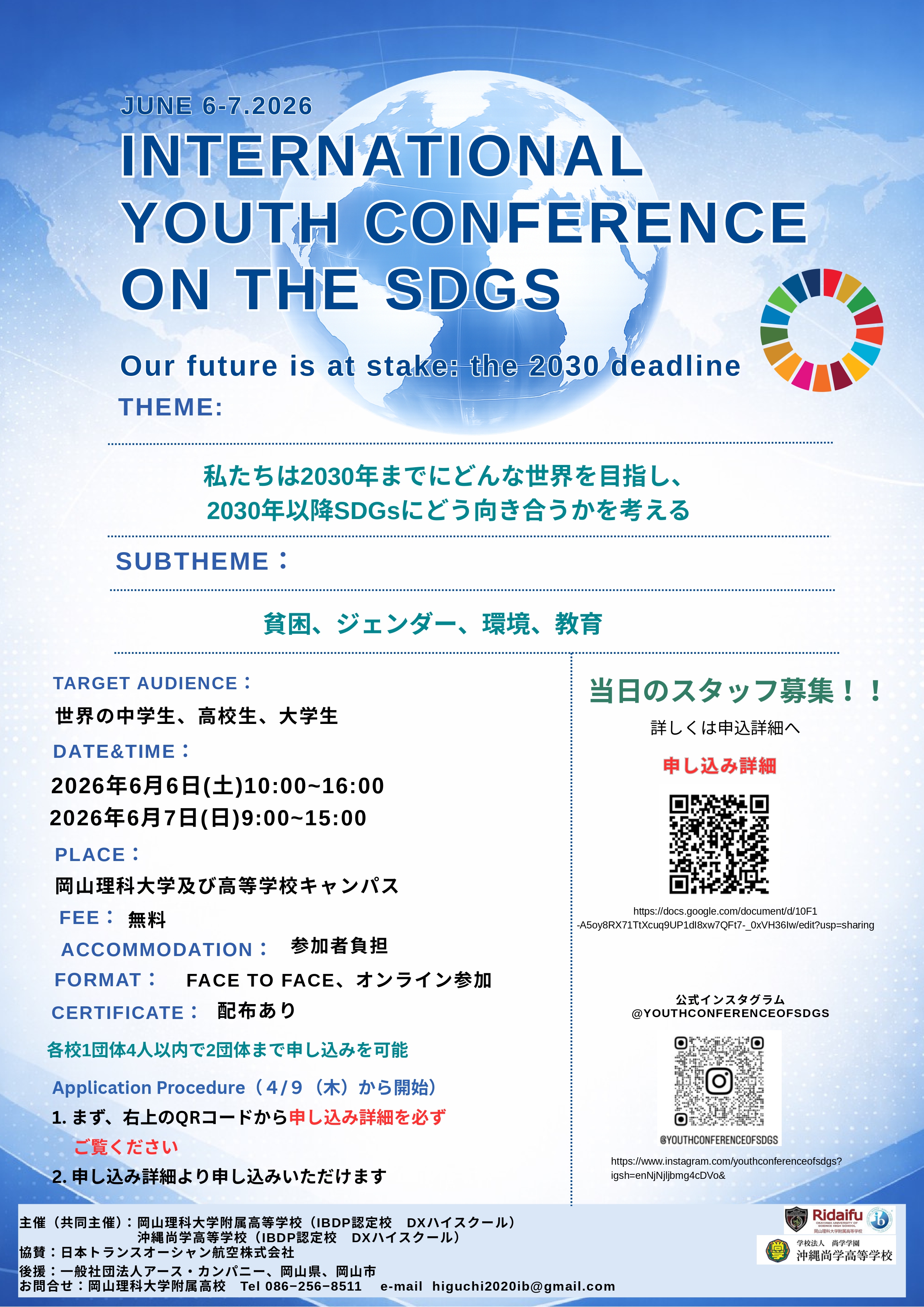 「INTERNATIONAL YOUTH CONFERENCE OF SDG’s」の開催のお知らせ
