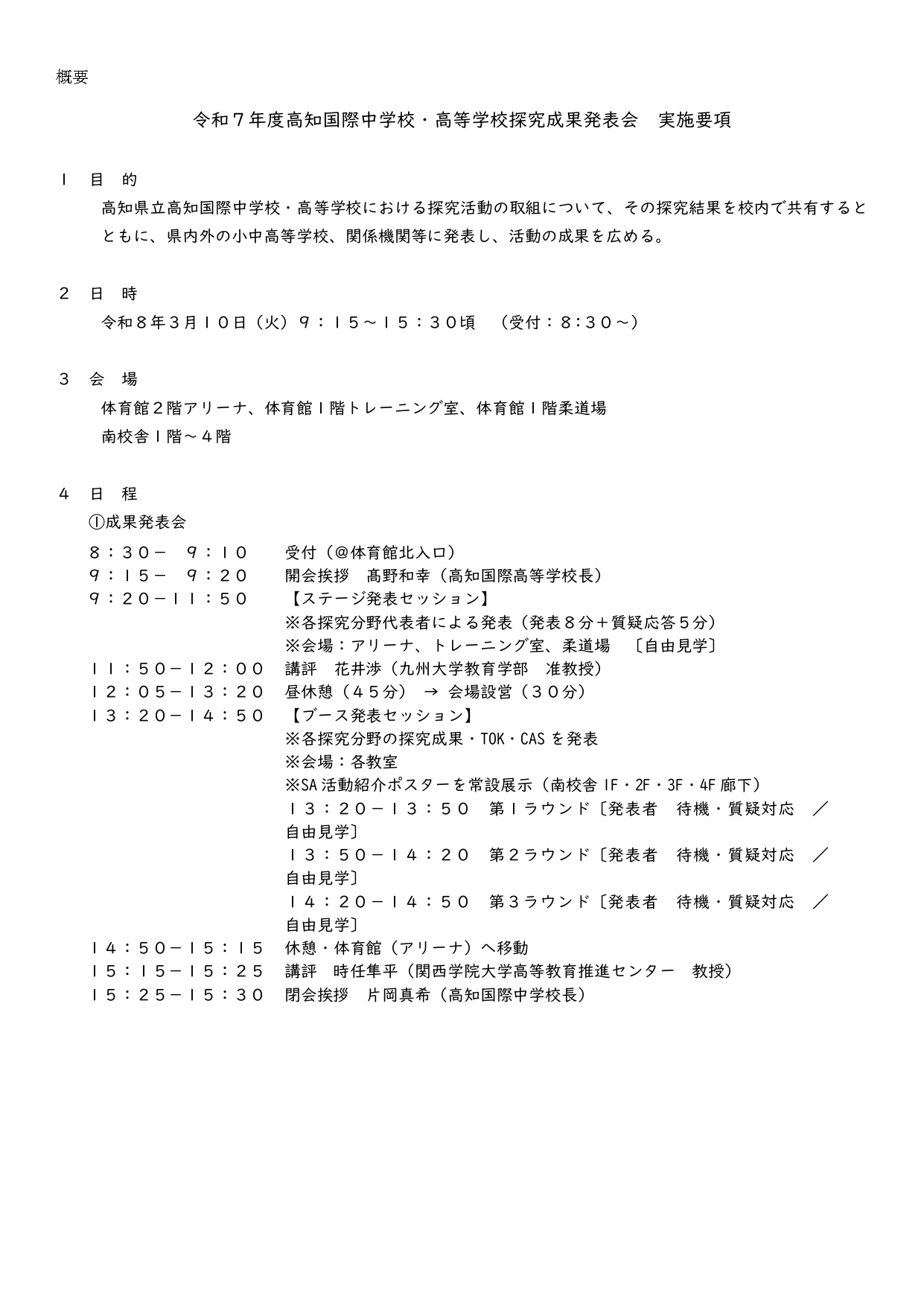 【2026年3月10日(火)】令和7年度探究成果発表会(主催:高知県立高知国際中学校・高等学校)