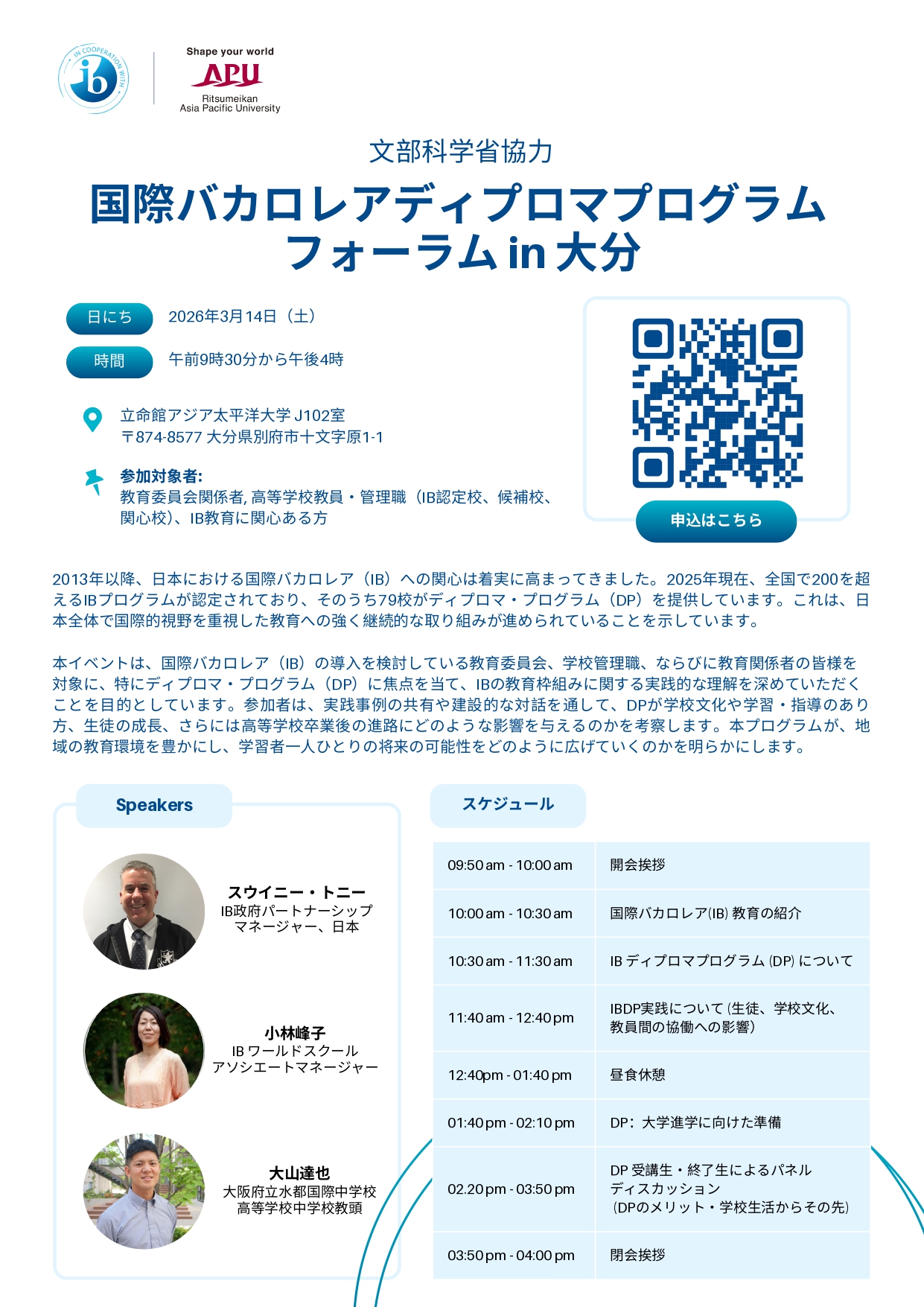 【2026年3月14日(土)9:30~】IBDPフォーラムin大分(国際バカロレア機構主催)