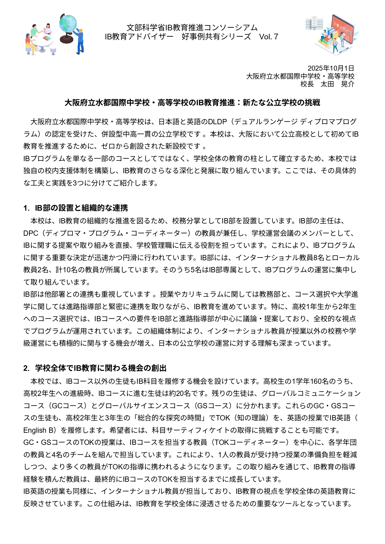 ⼤阪府⽴⽔都国際中学校‧⾼等学校