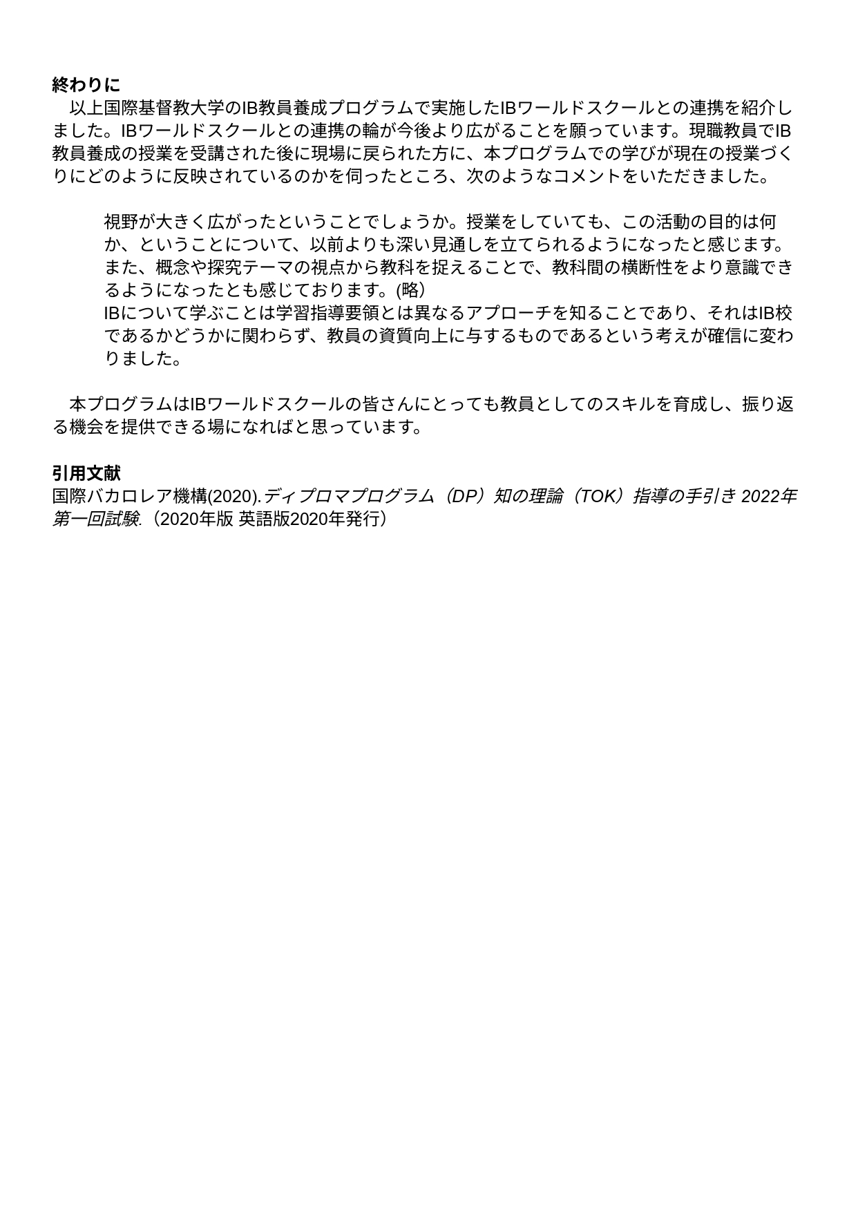 国際基督教大学大学院 IB教員養成プログラム IBワールドスクールとの連携を通した学び